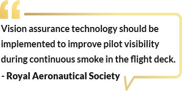 11.2.6 In the event that the other controls and mitigations listed above have not been effective, the crew may experience smoke in the flight deck that reduces visibility (protective breathing equipment is already required but does not necessarily provide visibility). There are means to displace smoke physically in order to make the flight critical instruments and electronic systems visible in the event of significant loss of visibility in the flight deck. To be most effective, a manufacturer should align any vision augmentation system with the capability and duration of the protective breathing system.